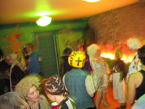We constructed the Sultan’s Envenomed Garden out of cardboard, colored paper, and weeds we’d pulled out of vacant lots and spray-painted various colors. It was the sort of party where Marie Antoinette screams bolts of faerie fire at Oompa-Loompas on the dance floor.