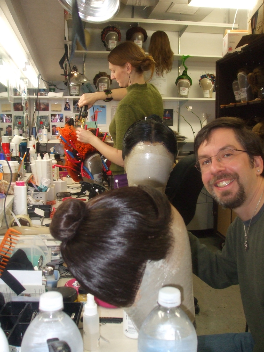 I read to them from Odd-Fish, I answered their questions, I asked them some questions (and heard some amazing stories; for example, Kirrilee is the daughter of a Rockette!), and then they took us for a full backstage tour. We met the wig-makers, gawked at the costumes, marveled at the ingenious set, visited the dressing rooms, and generally had a great time.