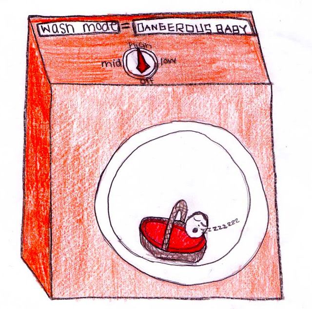 And here’s the washing machine in which the infant Jo was found at the ruby palace, by Anna M. I particularly like that the “wash mode” is set to “dangerous baby”!