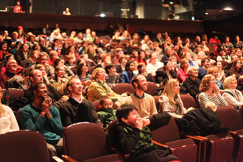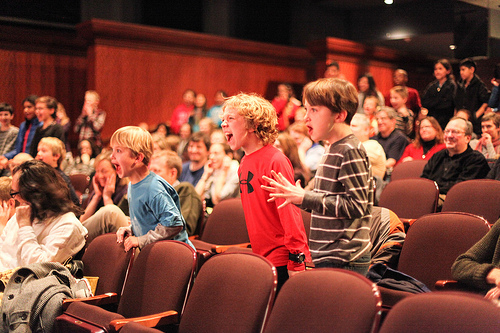 Here are some more choice shots from the screening. This first one is crowd response from when Chicago theater group Elephant and Worm (who did this year’s musical adaptation of Mrs. Frisby and the Rats of NIMH and last year’s musical adaptation of The Twenty-One Balloons) did a short audience-participation skit after their movie: