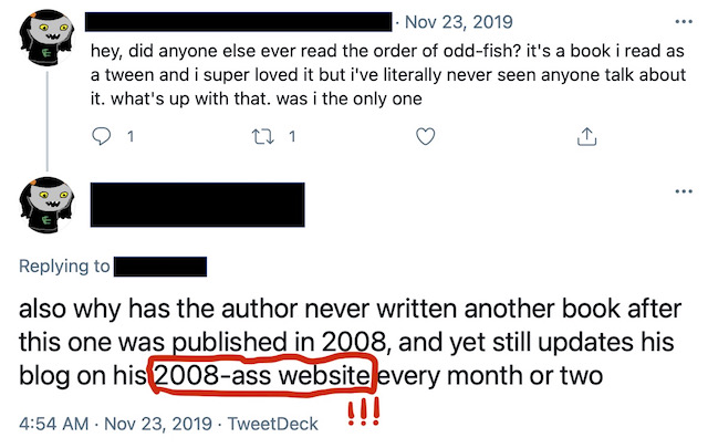 2008-ass?! But 2008 was one of the last times the internet actually felt good! This tweet spurred me into keeping my little 2008-ass corner of the web clunking along the way it always has: serif fonts, goofy graphics, busy layout, and all! Checkmate, random tweeter!