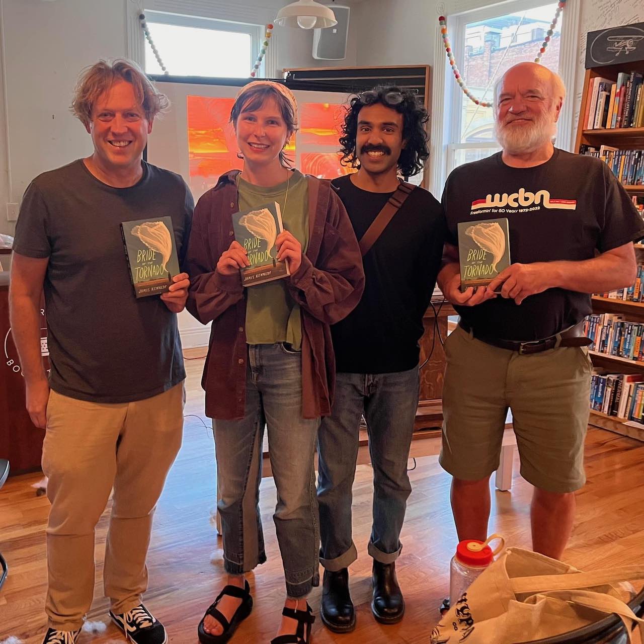 From there it was on to Literati Bookstore in Ann Arbor. More big surprises here: Victoria (next to me in the picture below) had already read and loved Bride of the Tornado and had lots of smart and pertinent questions, and Jason (not pictured) and I reminisced about The Electrifying Mojo and the Wizard from 1980s Detroit radio days! (The unseen DJ “Electrifier” in Bride is based on them.)