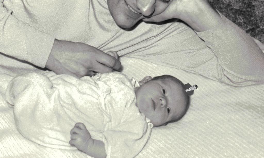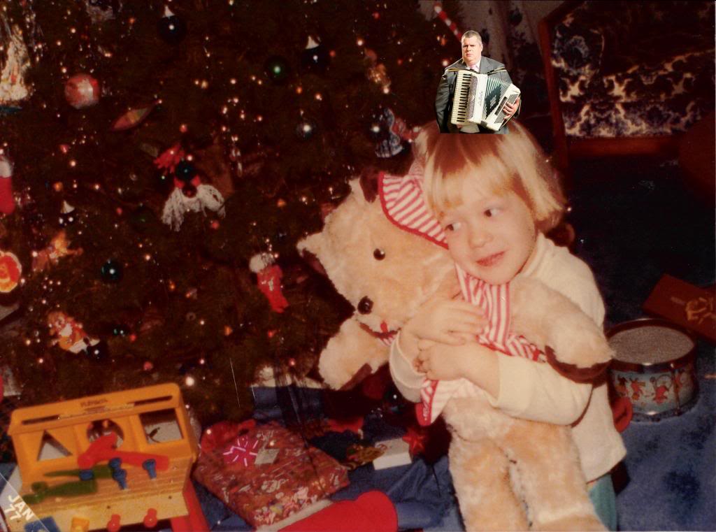 Then I put up on the screen many photos of a miniature but fully adult Daniel Handler appearing as a “sentient tumor” growing out of my body, throughout my childhood: