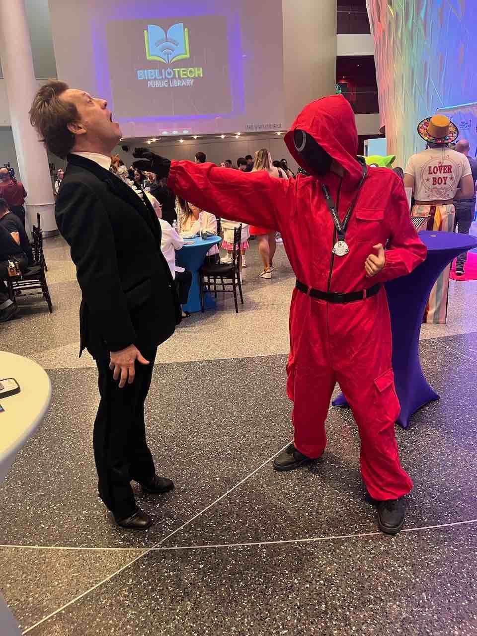 Let’s check out some of those winning movies! First Place for “Best Film From A Middle School or High School” and “Best Storytelling From A Middle School or High School” was won by by Juarez E., Carlos M., Jerusalem C., Menorah C., and Gabriella A. of the Advanced Learning Academy, for an adaptation of Ellen Raskin’s 1979 Medal Winner The Westing Game in the style of The Squid Game: