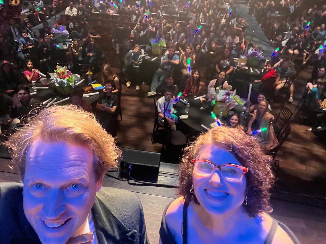 I’m late posting about it, but we had our San Antonio 90-Second Newbery Film Festival screening back in May! Check out the video of the event above, made by the good folks at the Alamo Film Group, in which I explain the premise of the film festival, we meet the other organizers Christa Aldrich and Laura Cole, and we get to hear from the kids themselves as they talk about their movies! Thanks to my partners at Bexar County Digital Library BiblioTech and H-E-B Read 3 for sponsoring the show and putting it on at the gigantic Tobin Center for the Performing Arts. Our San Antonio show is always our biggest show every year because of my brilliant local partners, and I’m so grateful to them! Thanks also to my co-host, author Claudia Villarreal (author of The Bully Who Learned to Love). She really whooped it up onstage with me, as you can see in the video to the right. (Unfortunately we don’t have a whole video of our opening song, but she really has pipes!) |